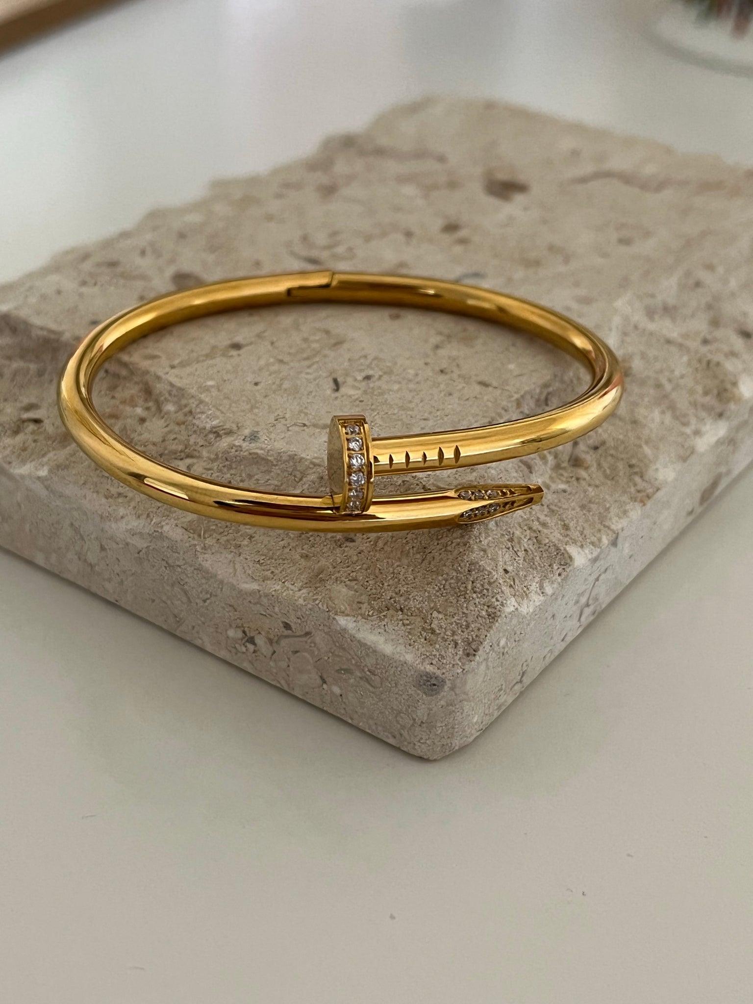 The perfect go-to piece. This trendy nail screw design cuff is an ideal anytime gift for yourself or a loved one. Pair it with Ari Ring to complete the look.