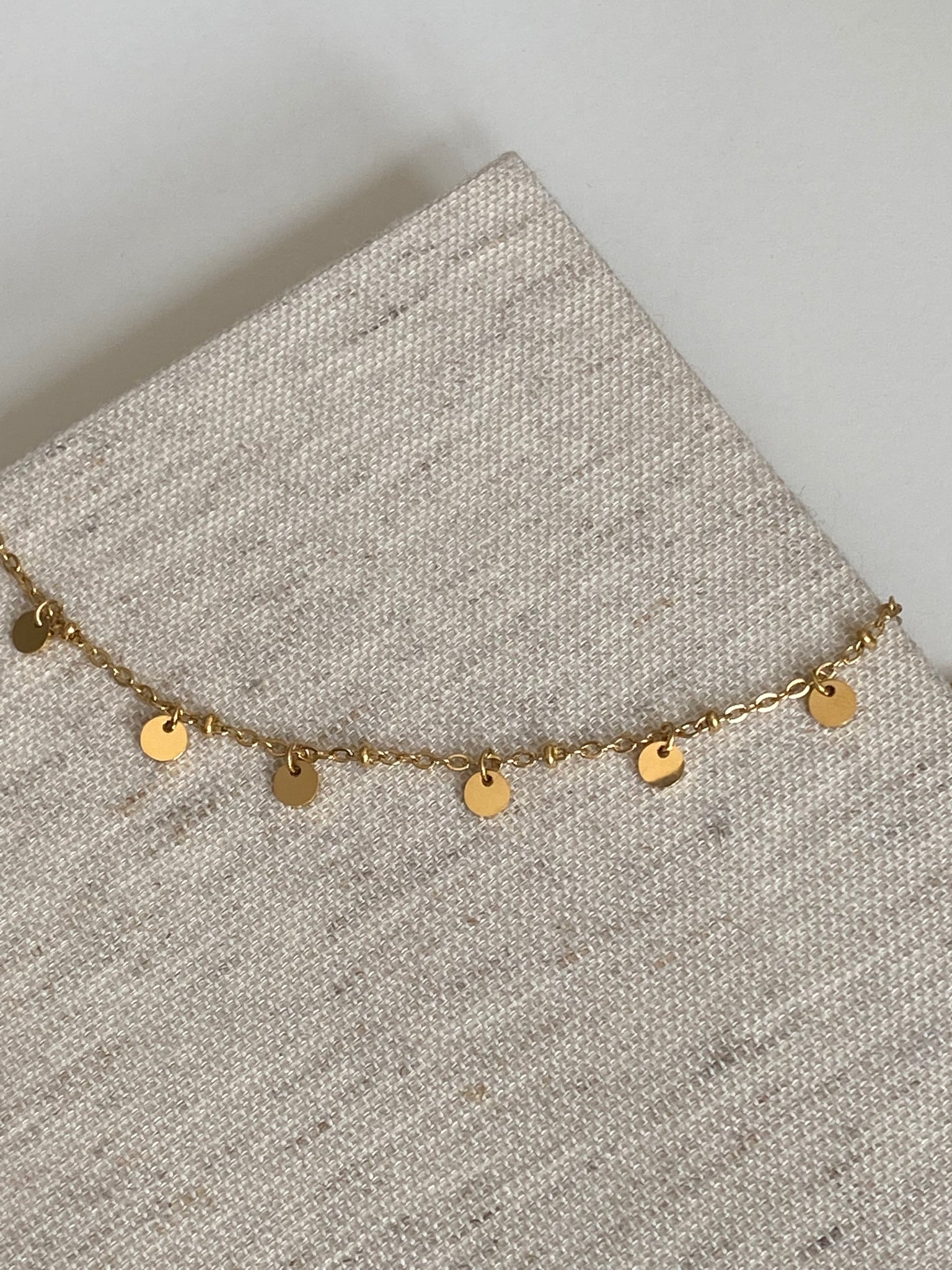 Major summer style inspo. Lana anklet features the most beautiful coin details on a dainty chain. This anklet pairs perfectly with your favorite sandals, but we like it best with bare feet in the sand.
