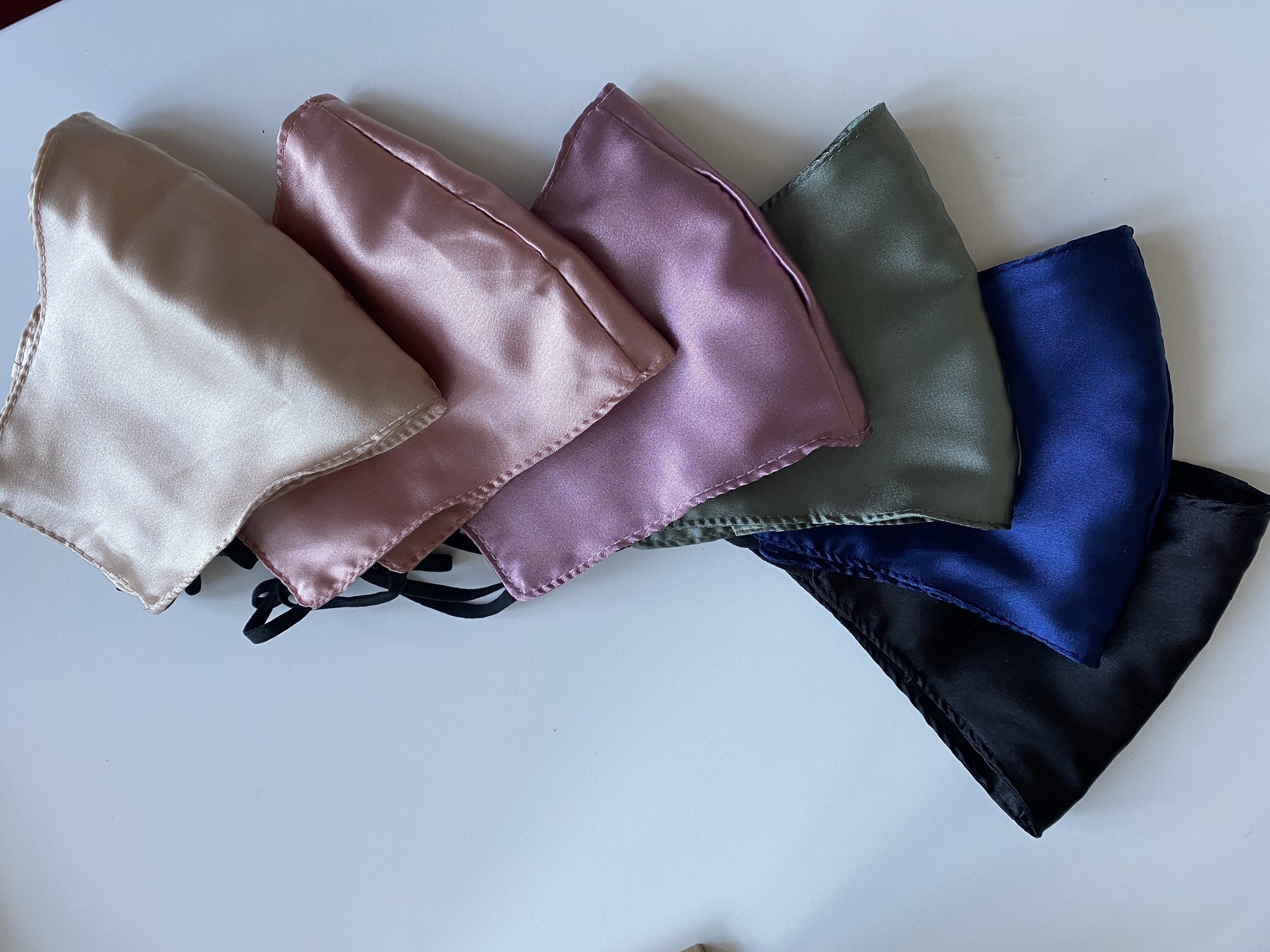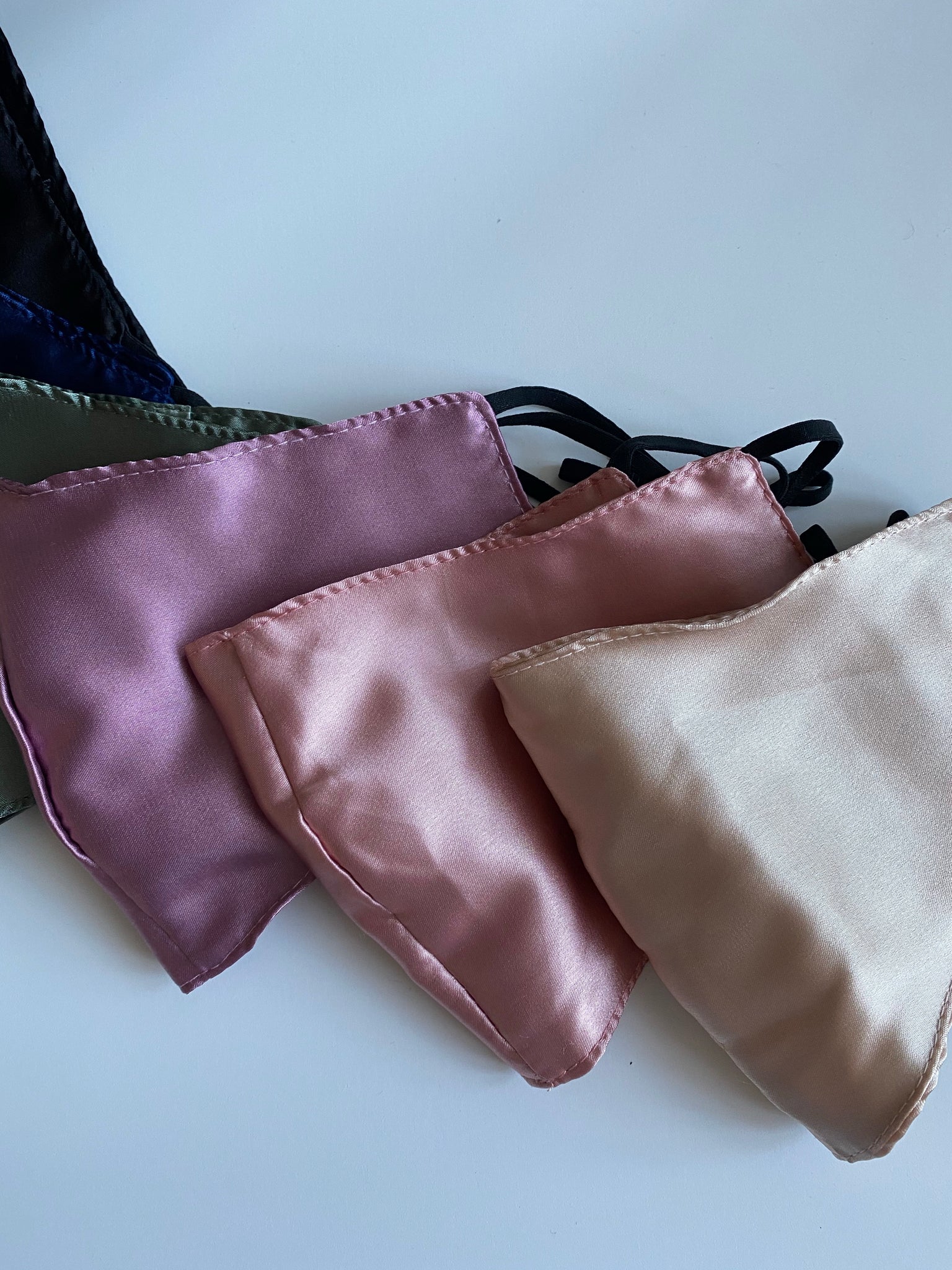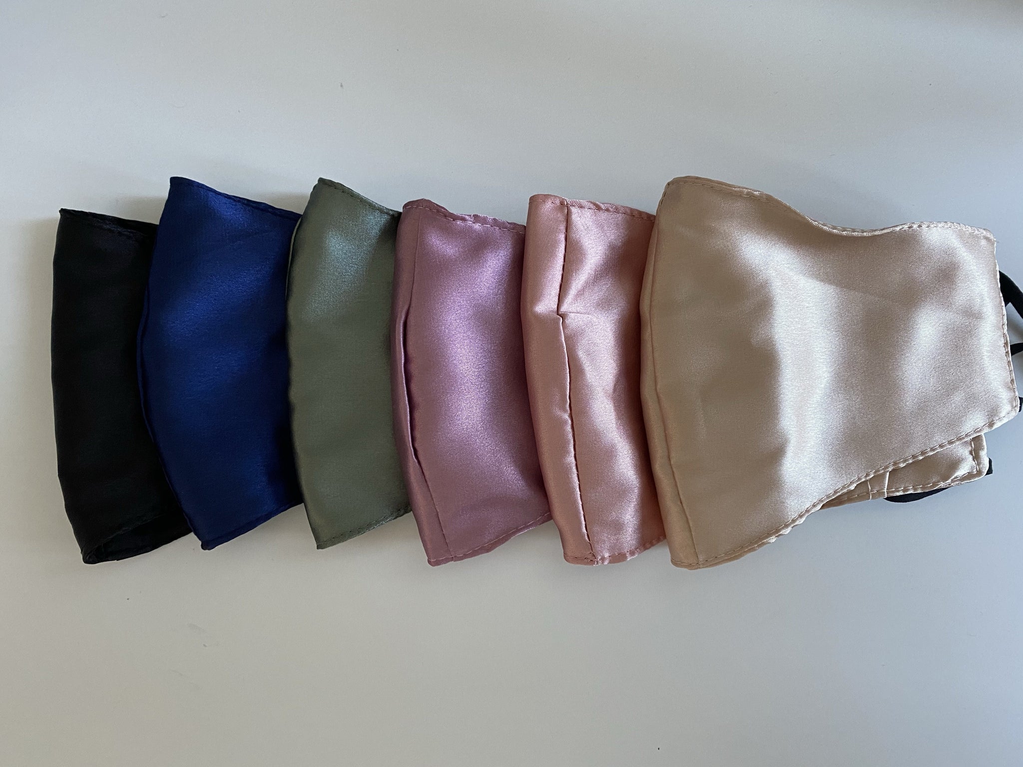 These satin face masks are made to fit any face comfortably adding that glamorous look to your everyday outfit.