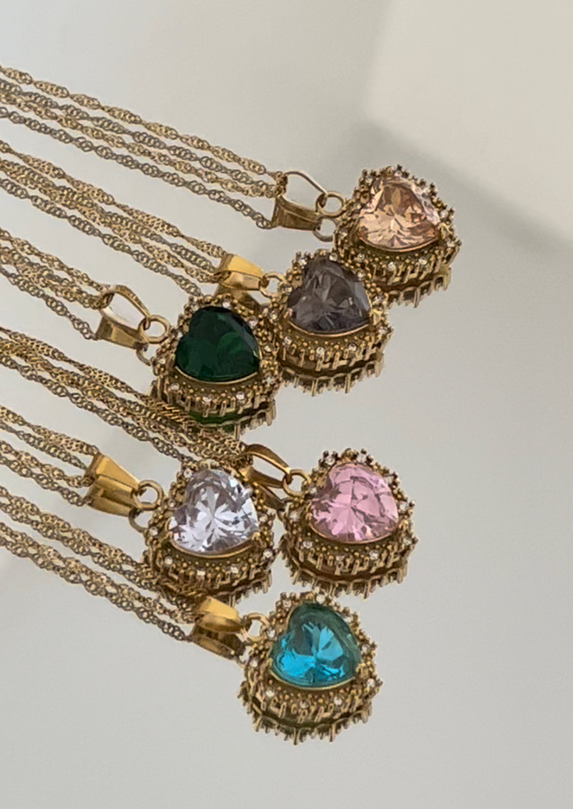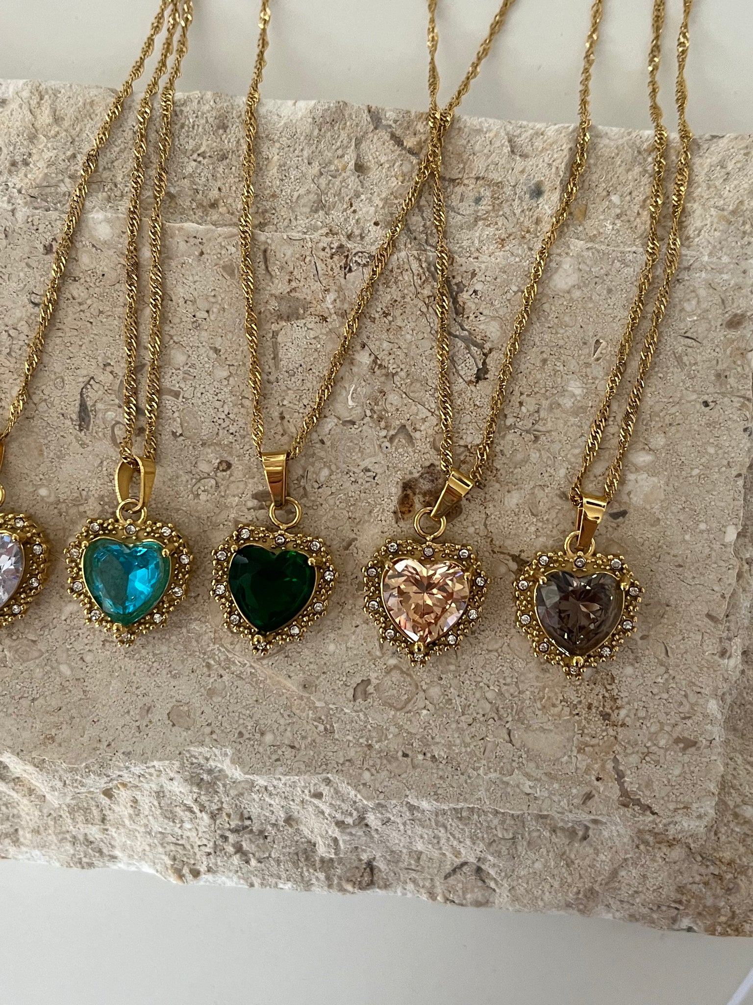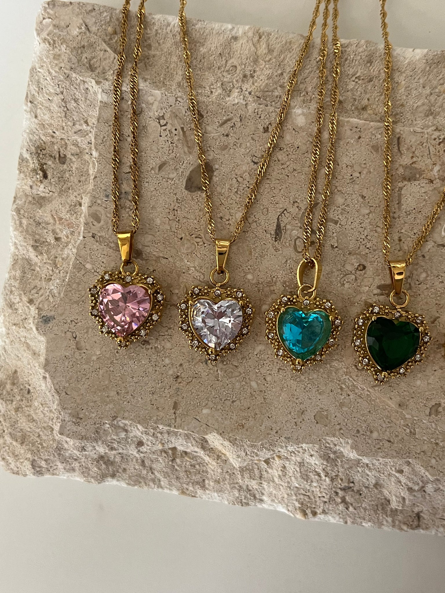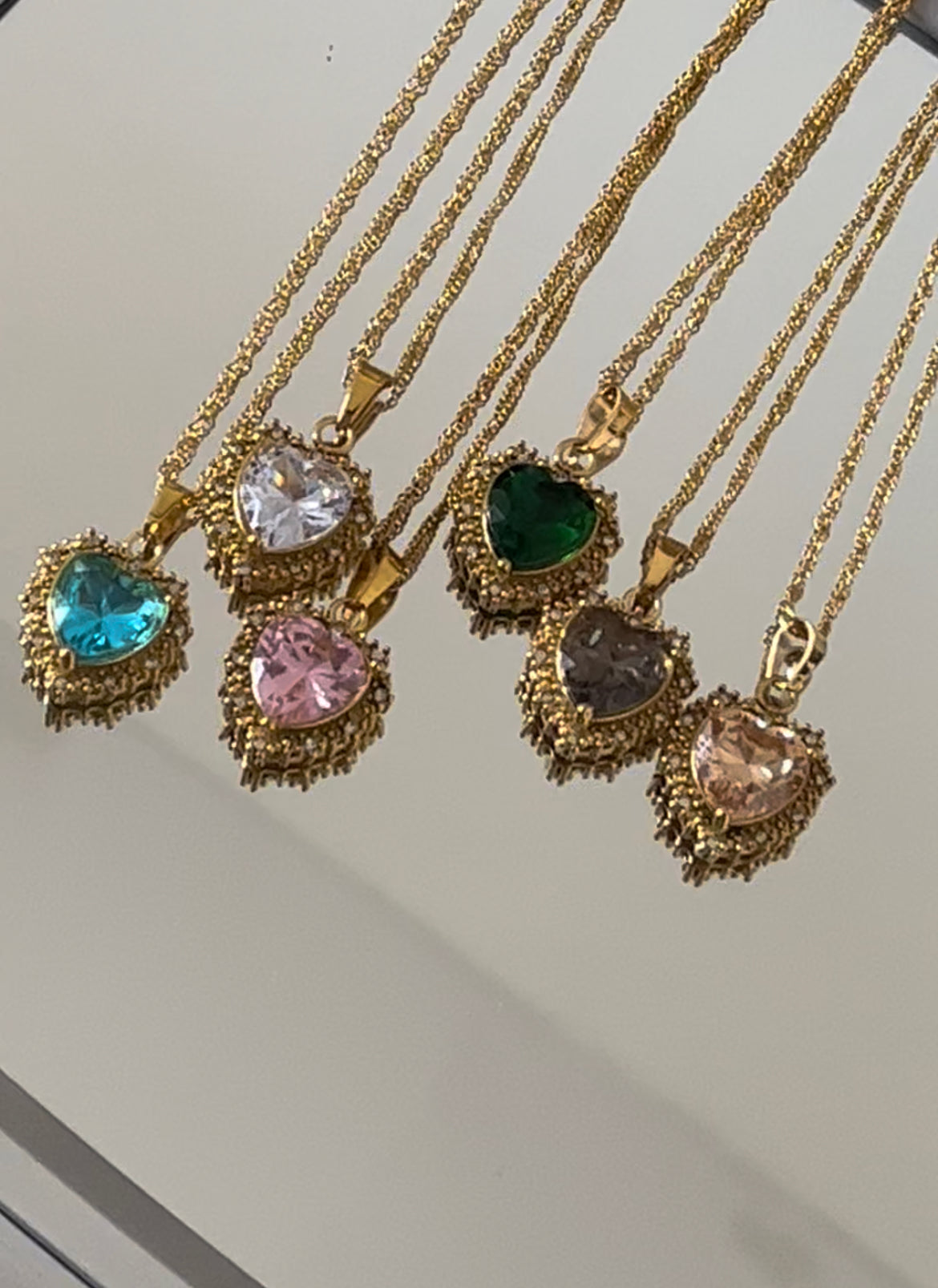 Win hearts with these gorgeous heart shaped necklaces. These necklaces add a beautiful pop of color to your everyday outfit. Perfect for the Spring/Summer.