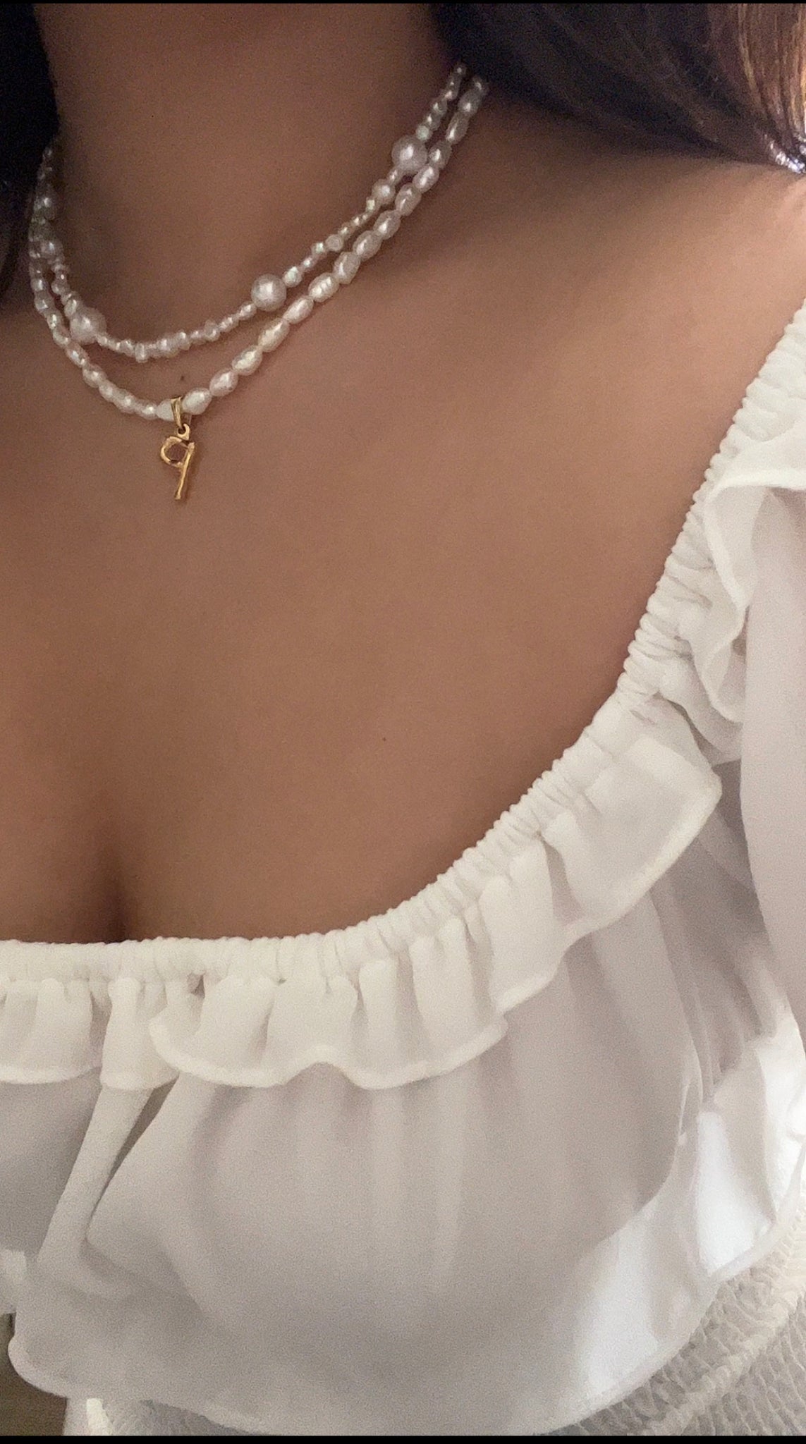 A classic Pearl necklace with a customized initial pendant, which gives a very personal touch. Perfect gift for yourself or a loved one. Perfect for everyday wear.