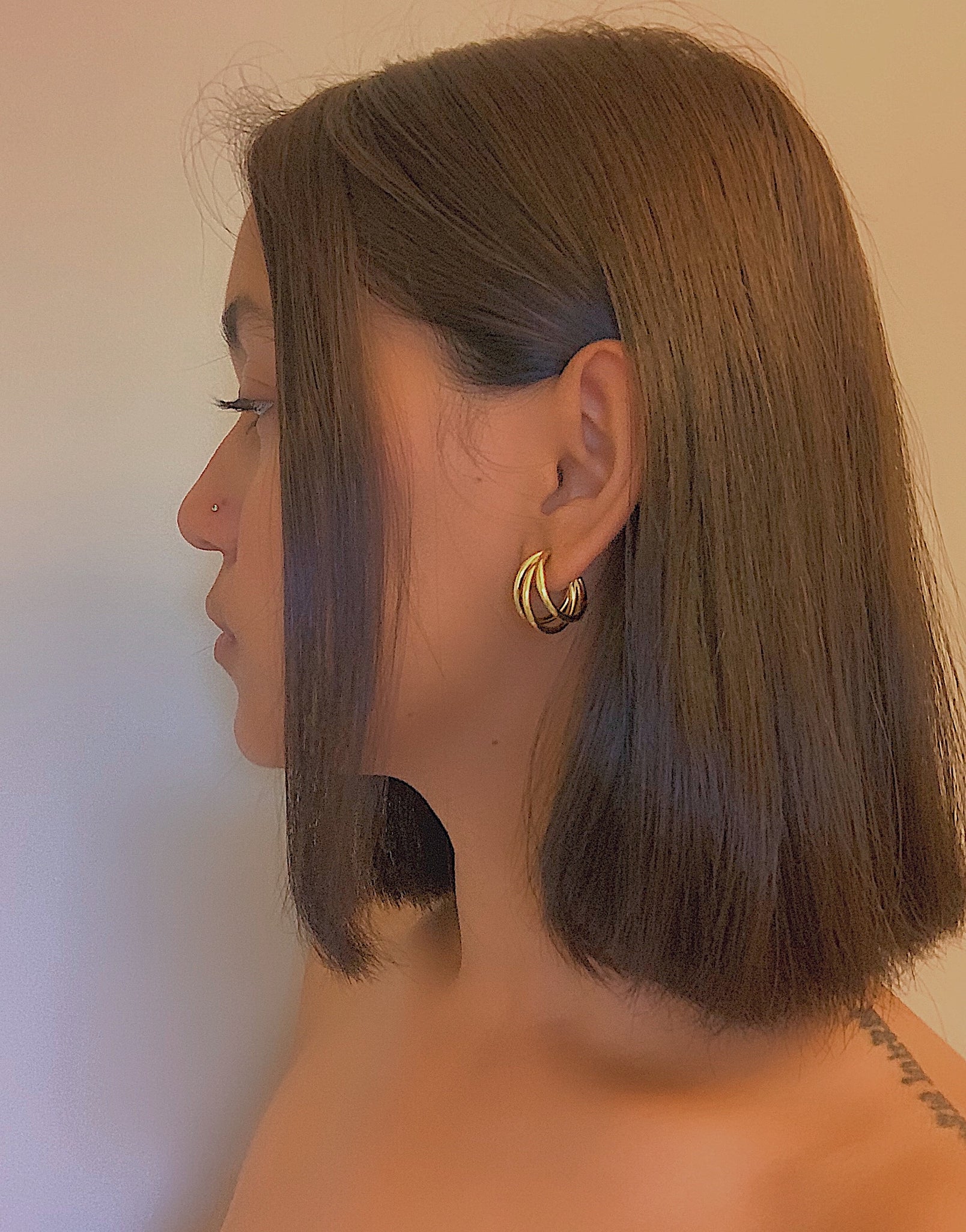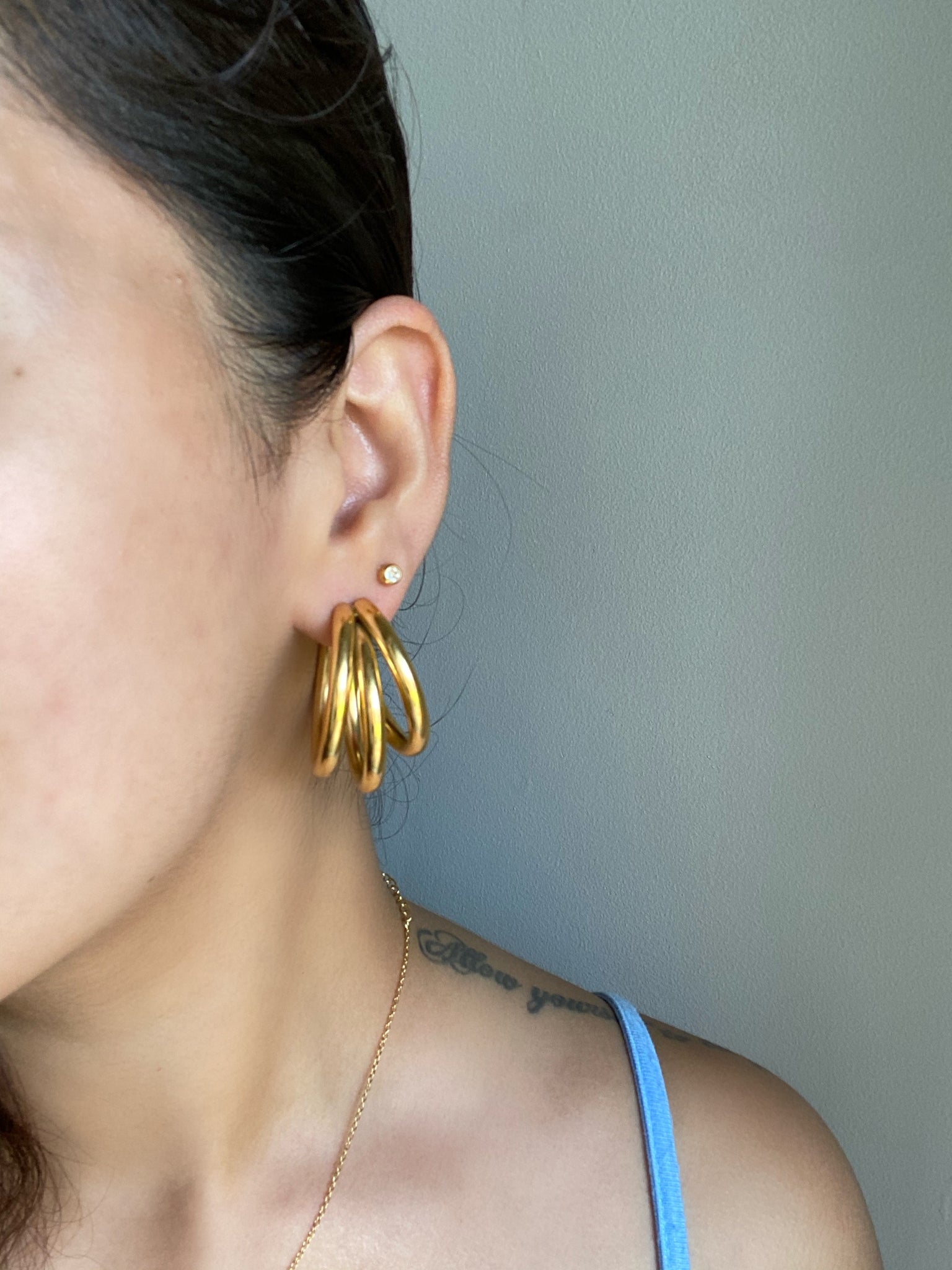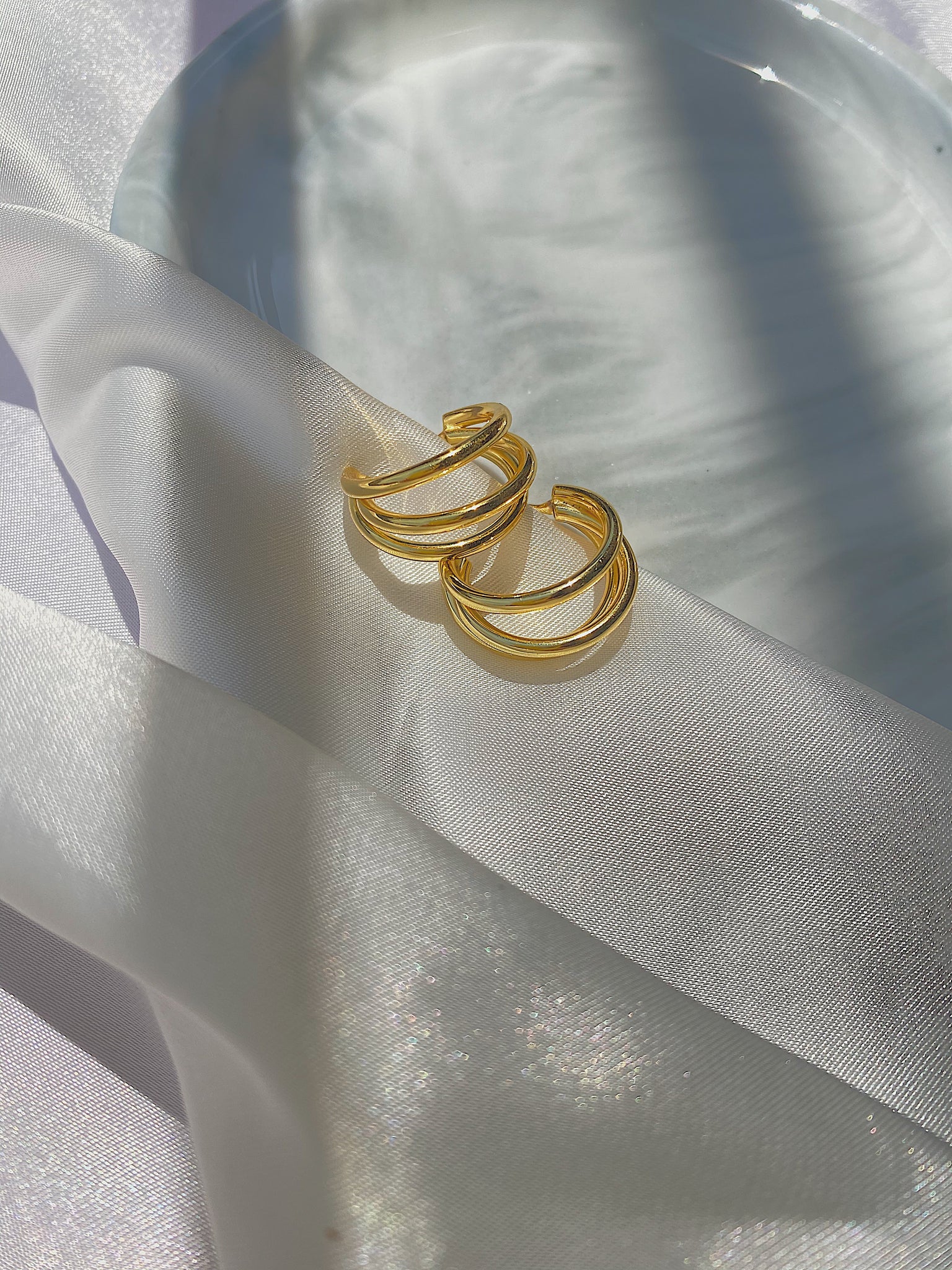 These three layered C shaped hoops are so trendy. Pair it with our Siannese Chain.