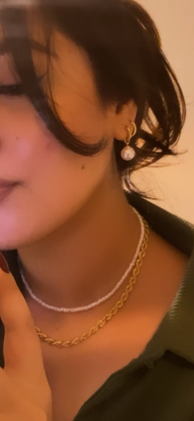 Lustrous pearl charm and a gold texture, these huggie hoop earrings are guaranteed to compliment your ears. Super comfortable and light weight. So easy to pair with any outfit. Wear it with or without pearl charms.