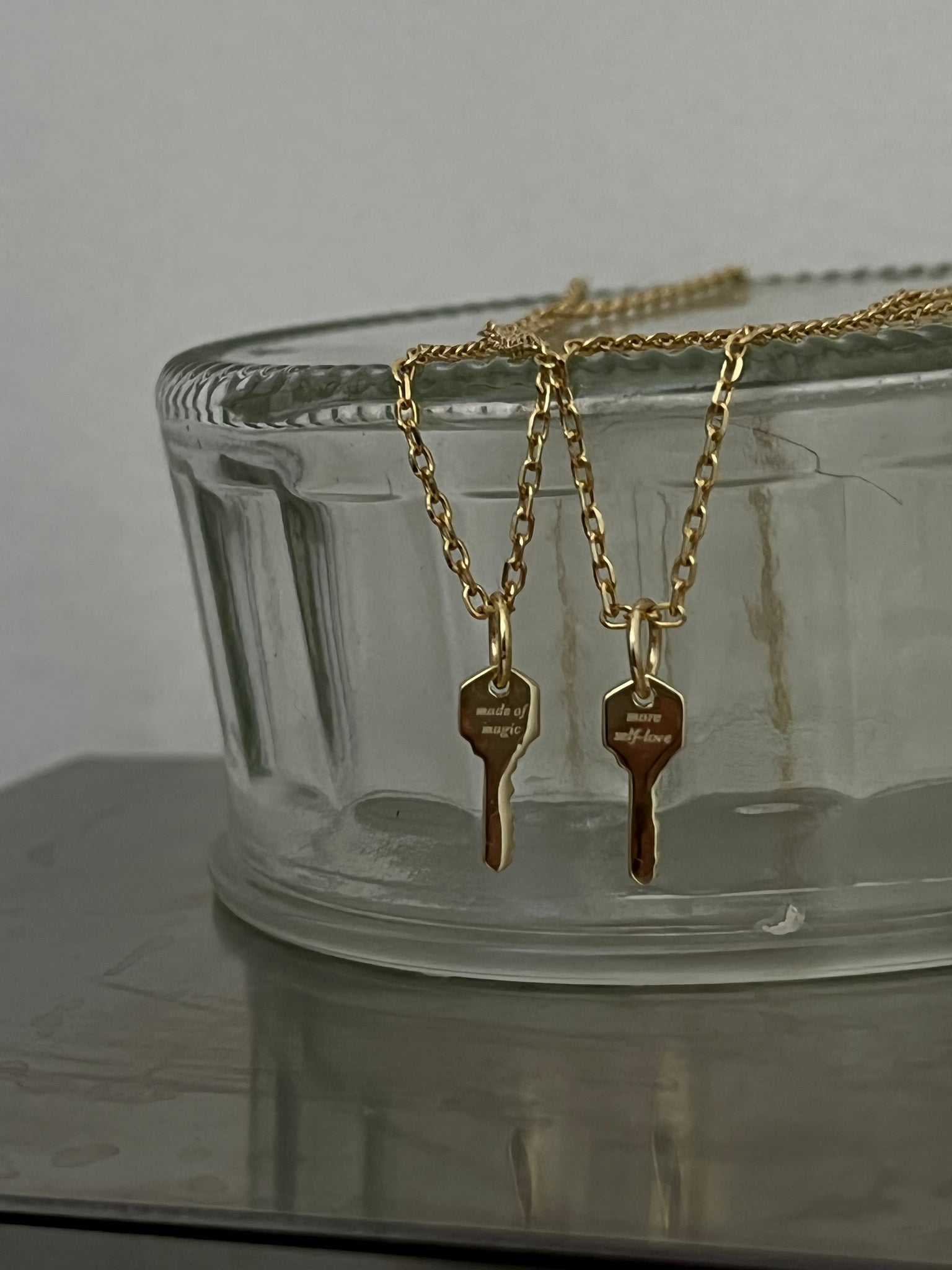 These affirmation key necklaces make the perfect gift for yourself or a loved one. Featuring words of affirmations on a dainty key pendant. A reminder to give yourself more love and the perfect everyday necklace that radiates positive energy.