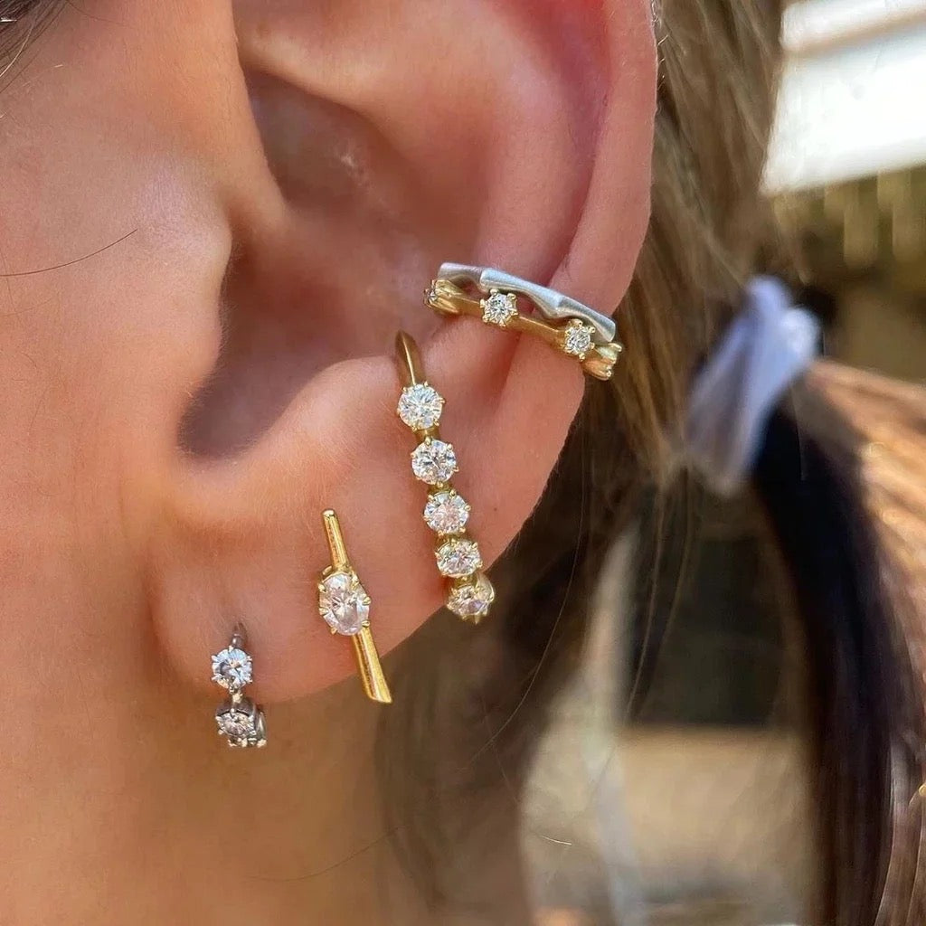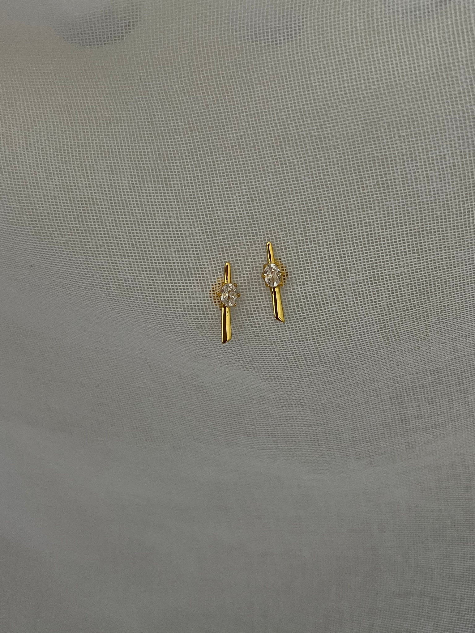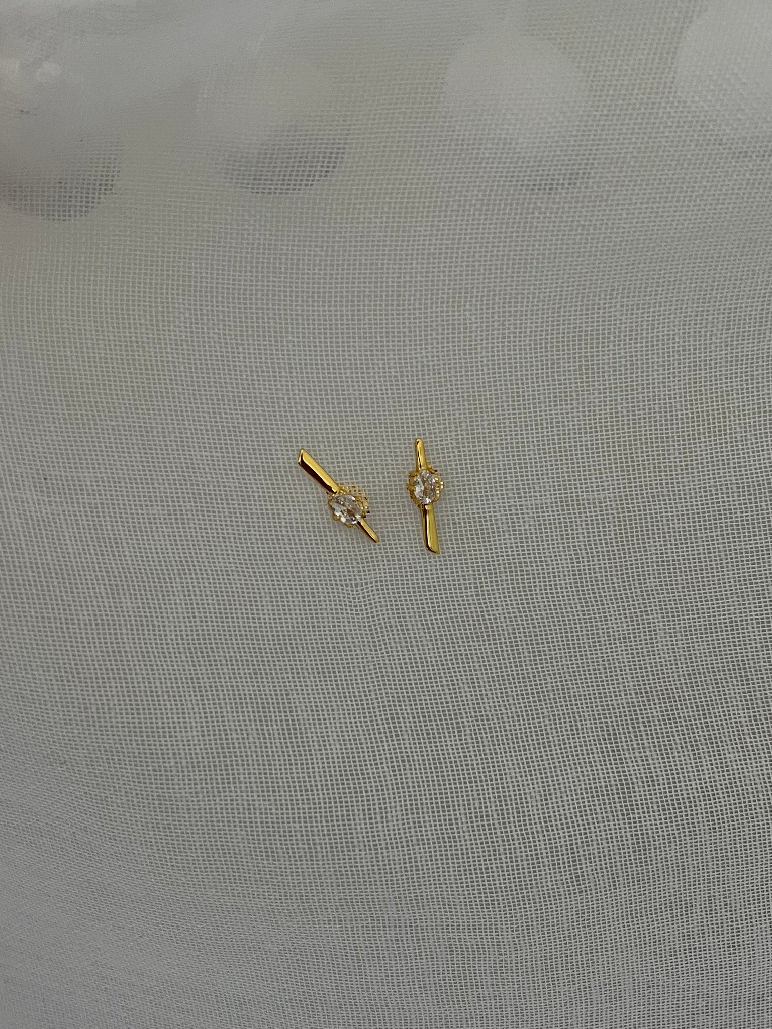 Featuring a dainty bar stud encrusted with a beautiful, sparkly oval shaped CZ stone. These studs are perfect for layering, and creating intricate ear stacks!