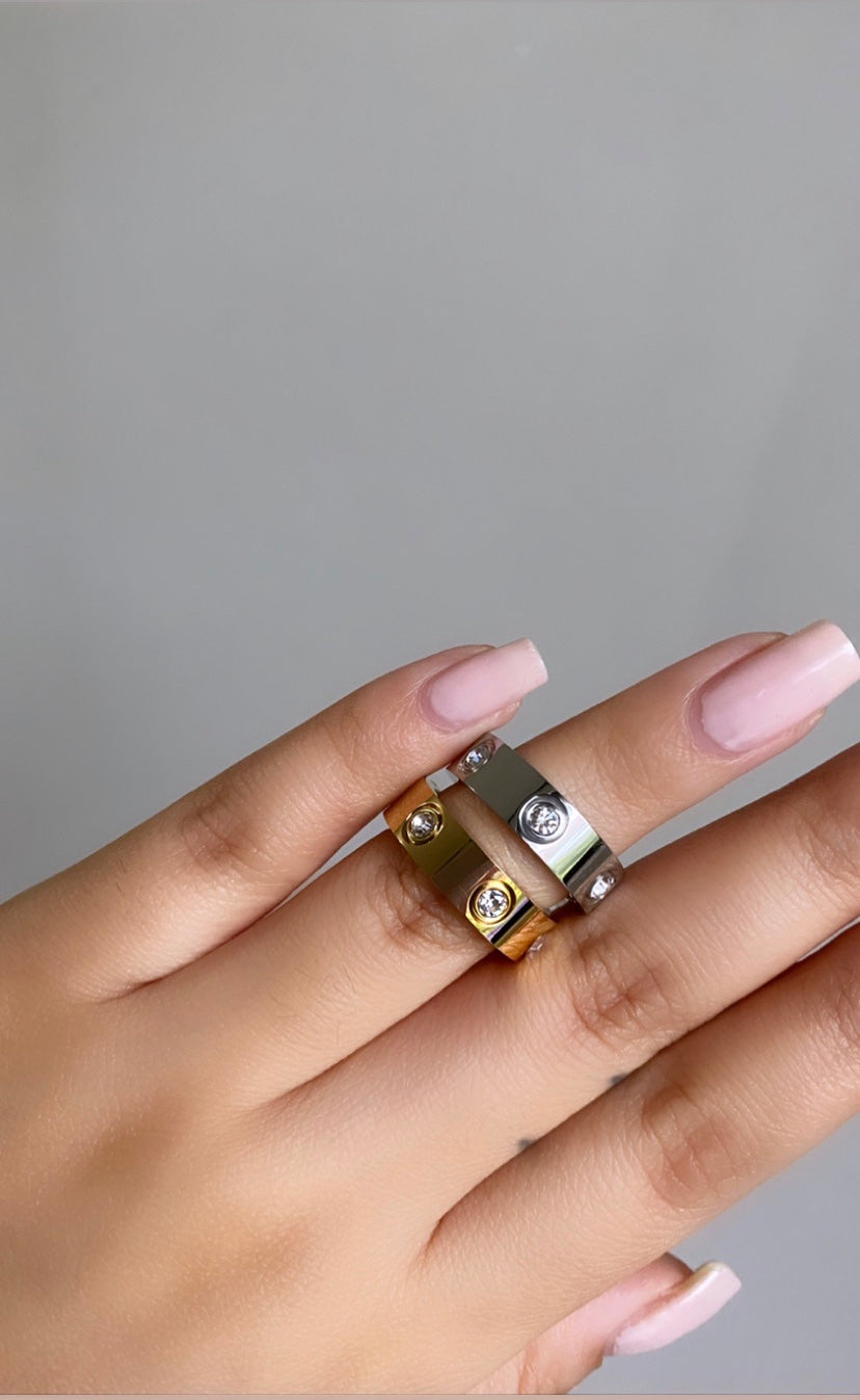 A Classic, high quality ring curated for you with love. Encrusted with cubic zirconia, that adds a classic yet modern touch. So versatile, goes with any outfit or mood. Wear it alone for a simple look or stack up if you're feeling extra bold.